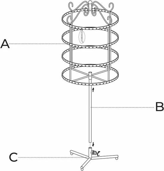 - Eenvoudige montage – Dit prachtige rek bestaat uit 3 delen: een rond frame, een steunbalk en een voet. Met zijn eenvoudige componenten is het eenvoudig te monteren en te demonteren