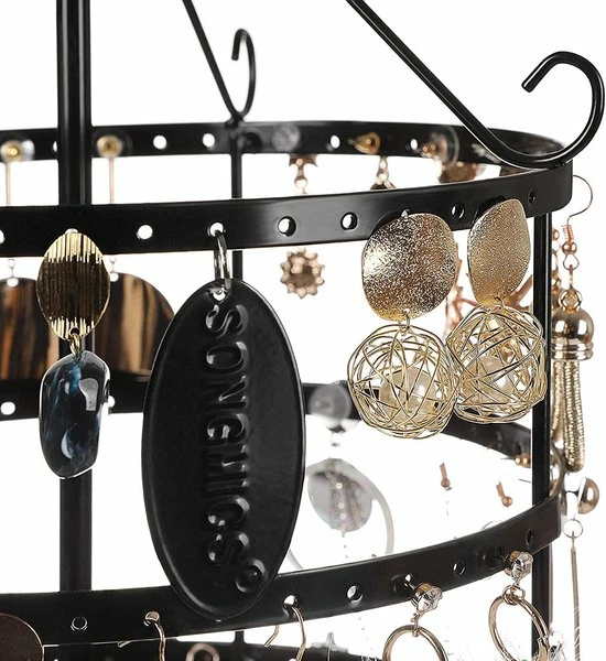 - Sterke functionaliteit – Dit product kan 96 oorbellen bevatten en u kunt ook uw kettingen en armbanden aan de haken aan de bovenkant hangen