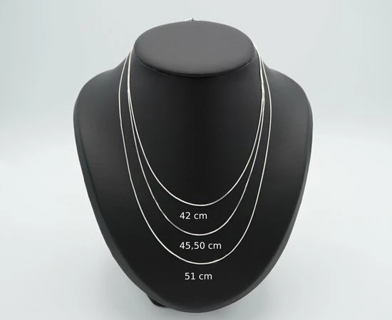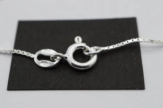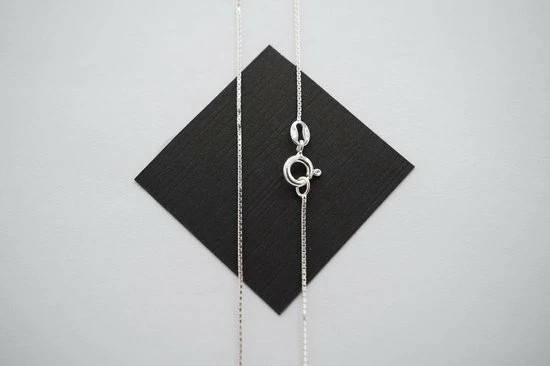 Echt 925 zilveren ketting. De lengte van de ketting is 45,50 cm en de ketting is 0,9 mm dik.