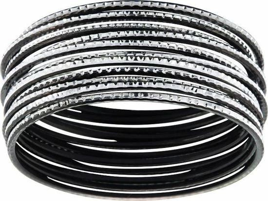 Behaveยฎ Set bangle armbanden zwart en zilver kleur 20 cm
