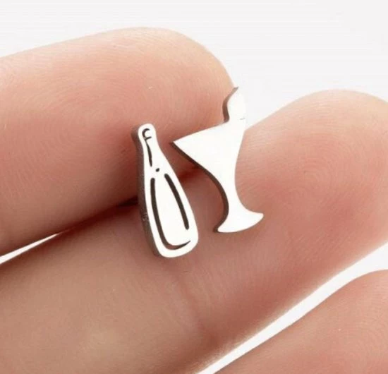 Kleine oorknopjes in de vorm van een Cocktail glas en champagne fles.