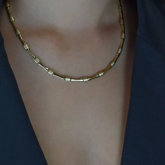 Een goudkleurige ketting die bij elke outfit past. Deze gematteerde ketting van Boccia Titanium heeft glanzende accenten. De ketting is 48cm lang.
