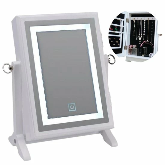 Het sieradenkastje van Cheqo is niet alleen handig voor het opbergen van sieraden. Op de voorkant van het kastje zit een spiegel met led verlichting. Superhandig als je je wilt opmaken. Bij het aanbrengen van make-up is goede verlichting immers onmisbaar. Zo kun je nauwkeurig werken voor een perfect resultaat.