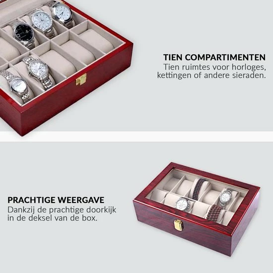 β 10 Compartimenten voor horloges, armbanden en andere juwelen