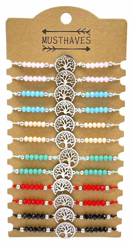 Set Armbanden – Bedel Levensboom – 12 Stuks – Lengte Verstelbaar