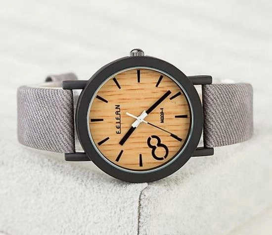De horlogeband is gemaakt van PU / kunstleder. Het uurwerk van het horloge is van Quartz. De houtlook details maken het horloge helemaal af. De horlogeband is circa 24 cm. Deze is verstelbaar door middel van de gespsluiting.