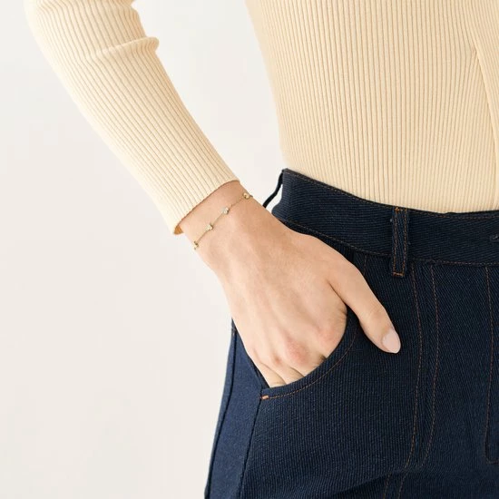 Deze station armband is gemaakt van goudkleurig roestvrij staal en heeft een karabijnsluiting. Deze armband is 64mm lang en 50,35mm breed.