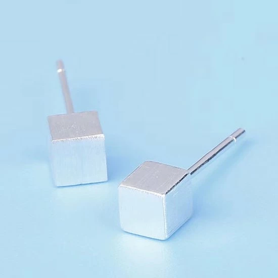 - Zilver 925 oorknoppen met kubus