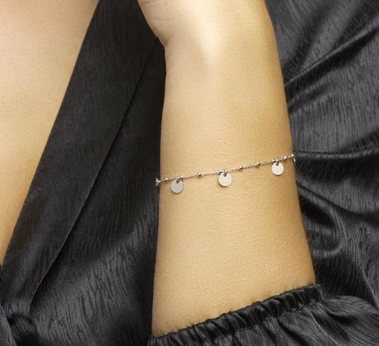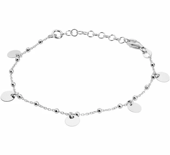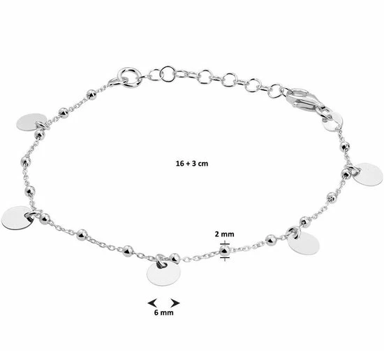 Gerhodineerd 925 zilveren anker armband uitgevoerd met bolletjes van 2mm en rondjes van 6mm. De armband heeft een stevige karabijn sluiting en een draaglengte van 16cm met een extensie van 3cm.