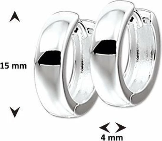 925 Zilveren klapoorringen met een bolle buis van 4mm breed en een gepolijste afwerking. De diameter van de oorring is 15mm.