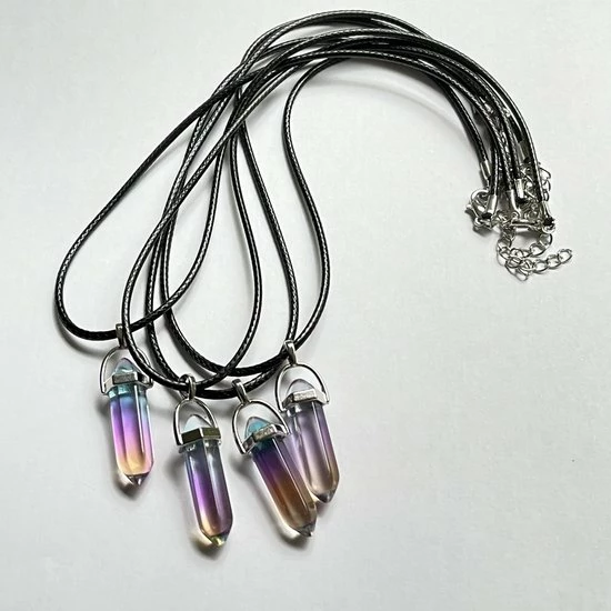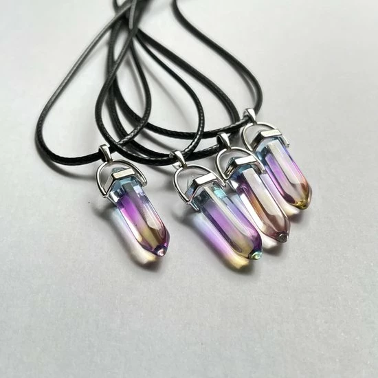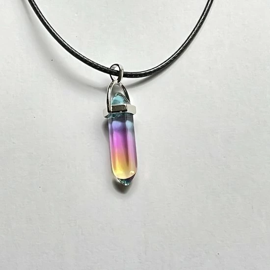 Stoere veterketting Pride Hexagon (c.a. 45-50 cm). De ketting is voorzien van een regenboog glashanger met hexagonaal vorm.