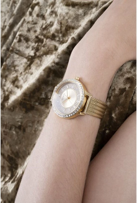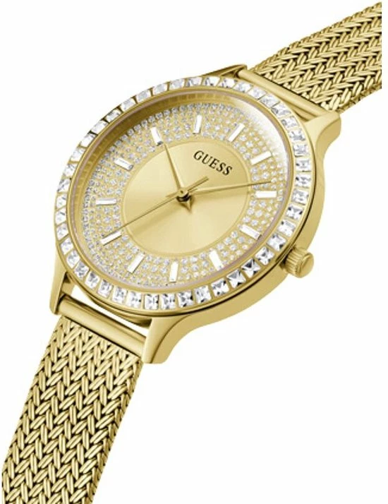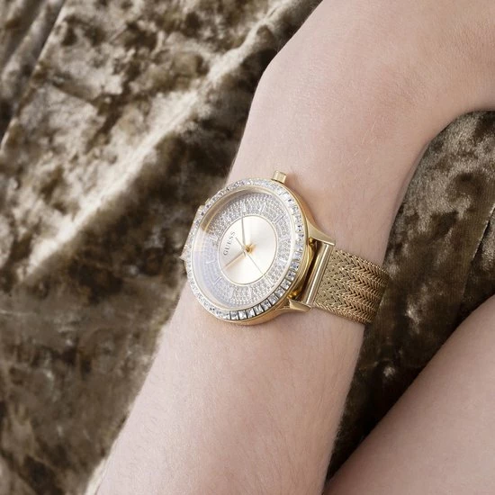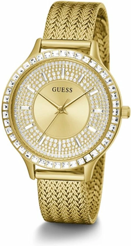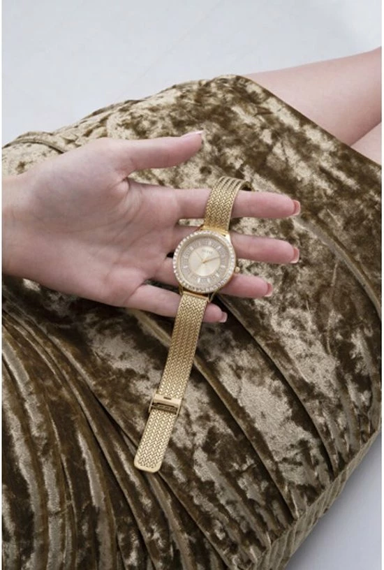 Dit is de GW0402L2 horloge van GUESS. Het horloge heeft een Quartz uurwerk. De wijzerplaat is Goudkleurig en is afgedekt met Mineraalglas. De kast is gemaakt van RVS en heeft een diameter van 38 mm. De band van het horloge is Goudkleurig en gemaakt van RVS. Van dit horloge heb je jarenlang draagplezier!