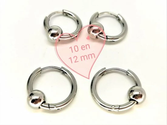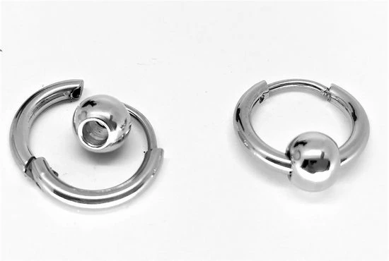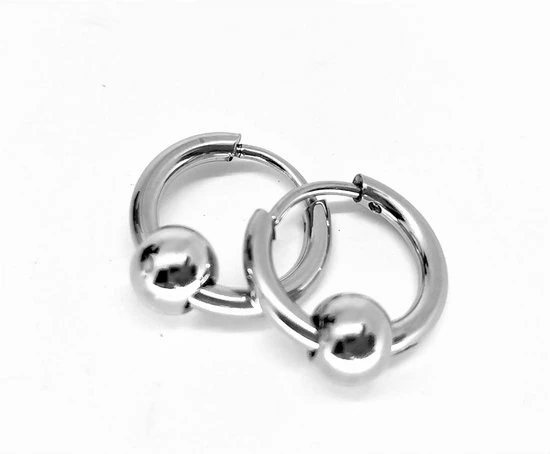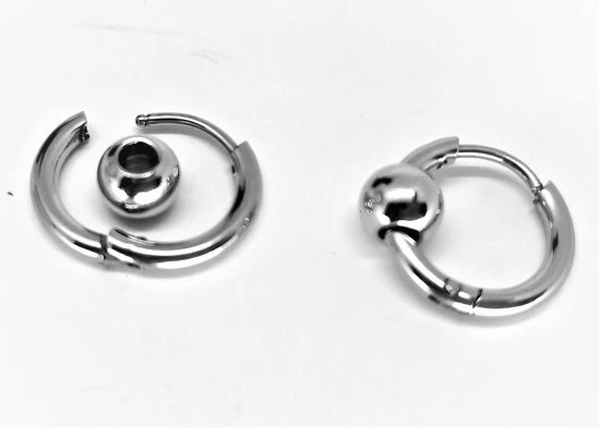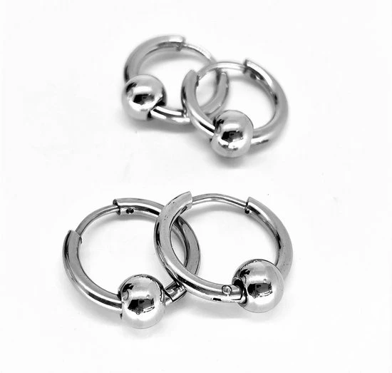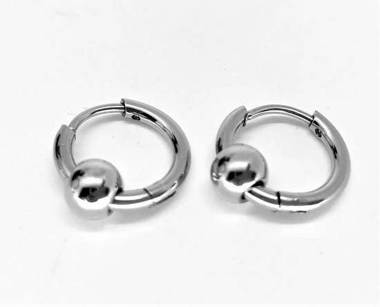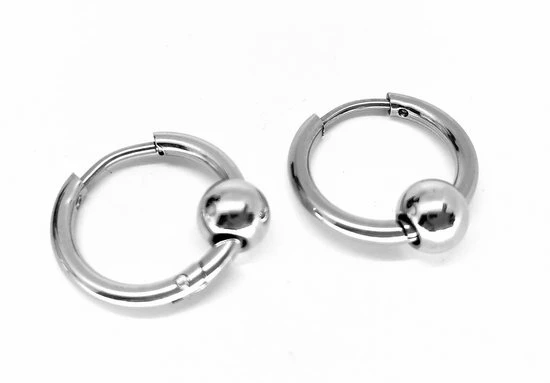 Unisex Oorringen zilverkleurig Γ12mm met 1 los rond bal deco ringetjes chirurgisch staal 316L,