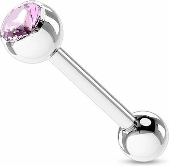 Deze zirkonium gelegde steen in een prachtige tongpiercing is tijdloos. Het onderste balletje kan los.