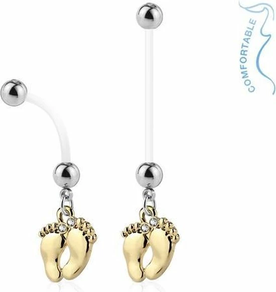 Ben je in verwachting, gefeliciteerd! Maar nu je buik groeit zul je toch een leuke flexibele navelpiercing moeten hebben. Mooie hart piercing voor de baby en voor jullie geluk. Geniet nu maar weer van je mooie dikke buik en een geweldige navelpiercing.