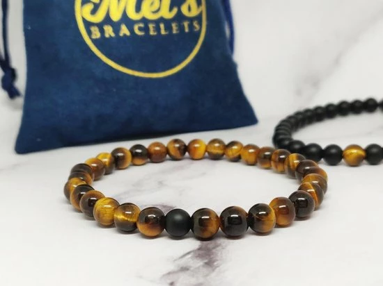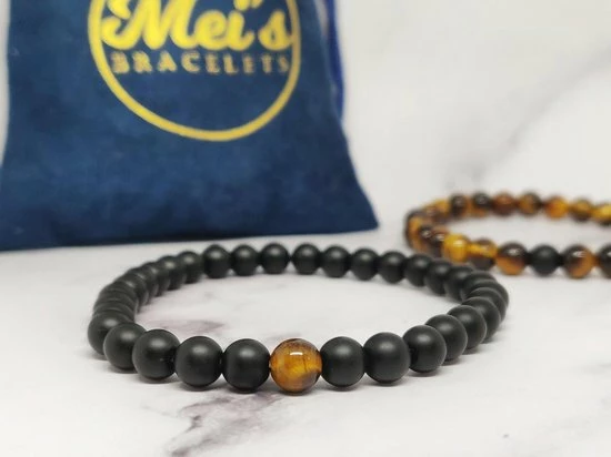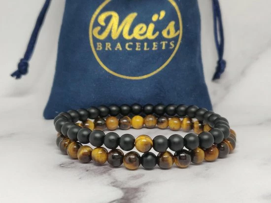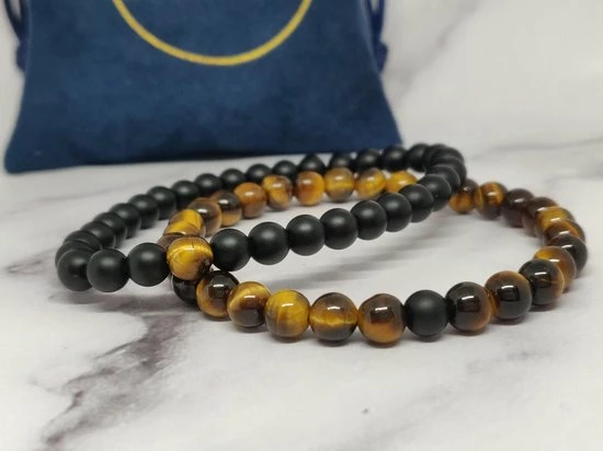 Een mooie set armbanden van de stenen “Tijgeroog” en “Zwarte Onyx”.