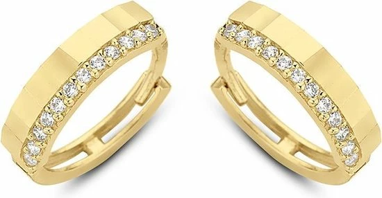 Mooie 14 Karaat geel gouden oorringen met zirkonia steentjes. De oorringen zijn 12.5mm doorsnee. De oorring is 3mm breed. Doorsnee van de zirkonia steentjes is 1mm. Deze prachtige oorringen zijn perfect te combineren met de schitterende sieraden van New Bling voor een complete look.