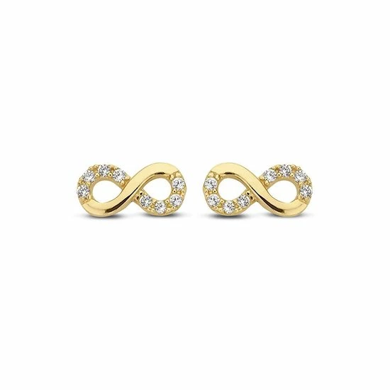 Mooie klassieke 14 Karaat geel gouden Infinity oorknopjes met zirkonia steentjes van New Bling. Het knopje is 8mm x 4mm. De knopjes zijn voorzien van gouden poussettes. Perfect te combineren met de schitterende New Bling sieraden voor een complete look.