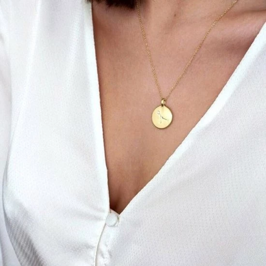 De ketting met het sterrenbeeld Boogschutter, ofwel Sagittarius, is verguld en heeft een ronde hanger versierd met edelstenen in de vorm van het sterrenbeeld. De ketting heeft een zachte, matte afwerking en is het perfecte cadeau voor jezelf of degene die je koestert.