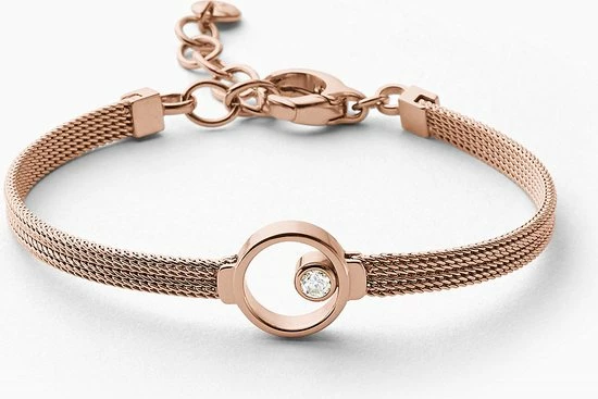 Het detail van dit rosΓ©goudkleurige armband is geΓ―nspireerd op een oester, de armband is afgewerkt met een ingelegd steentje.
