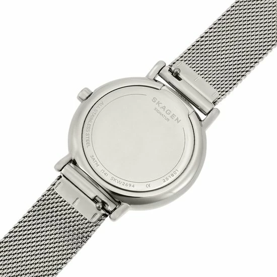 De Skagen SKW2692 is gemaakt van roestvrij staal, een kwalitatief metaal met een hoge weerstand tegen aanslag en corrosie. Dit horloge zal dus niet snel oxideren of zwart worden. Roestvrij staal is ook hypoallergeen, wat betekent dat het de huid beschermt tegen irritatie. Kortom, een ideaal materiaal om een horloge van te maken!