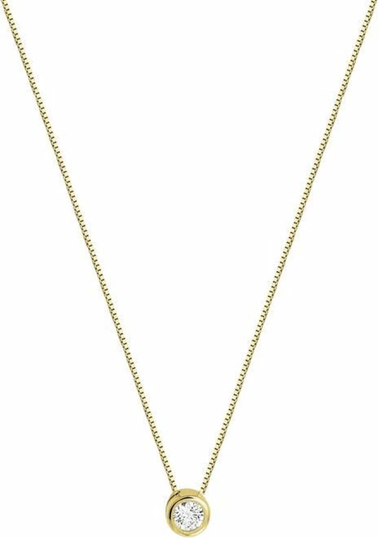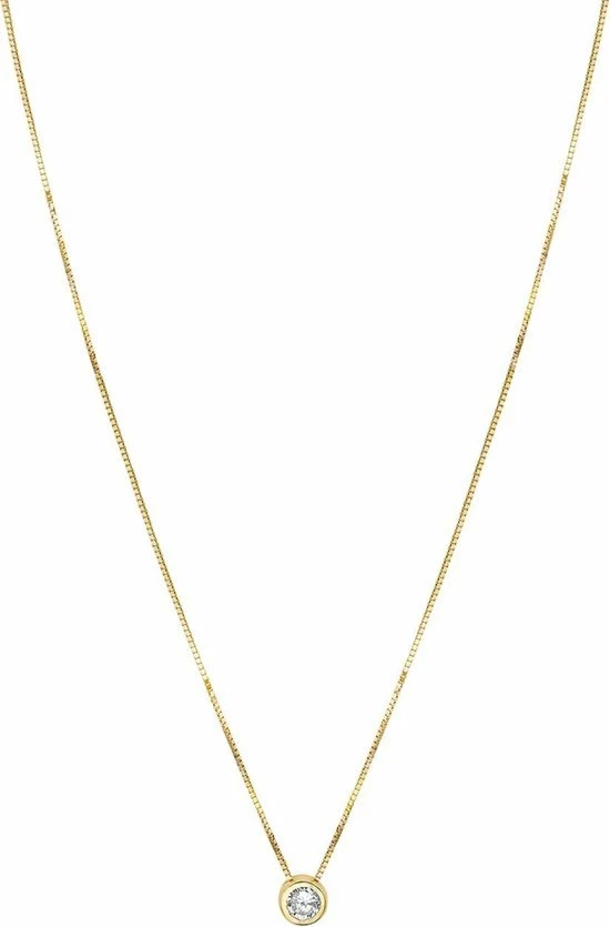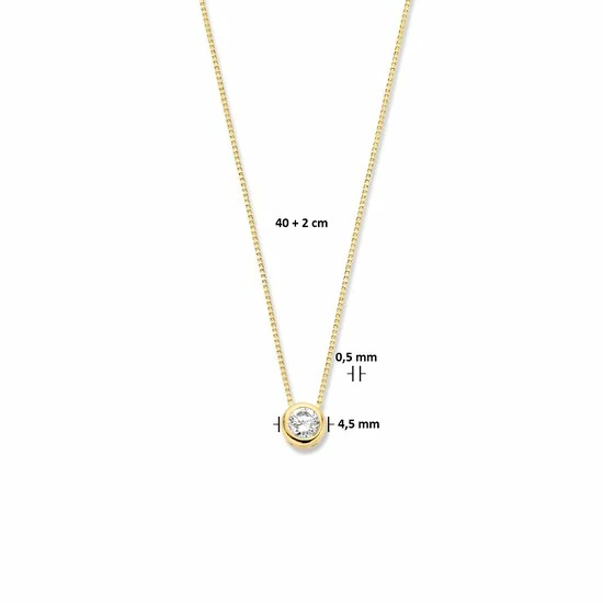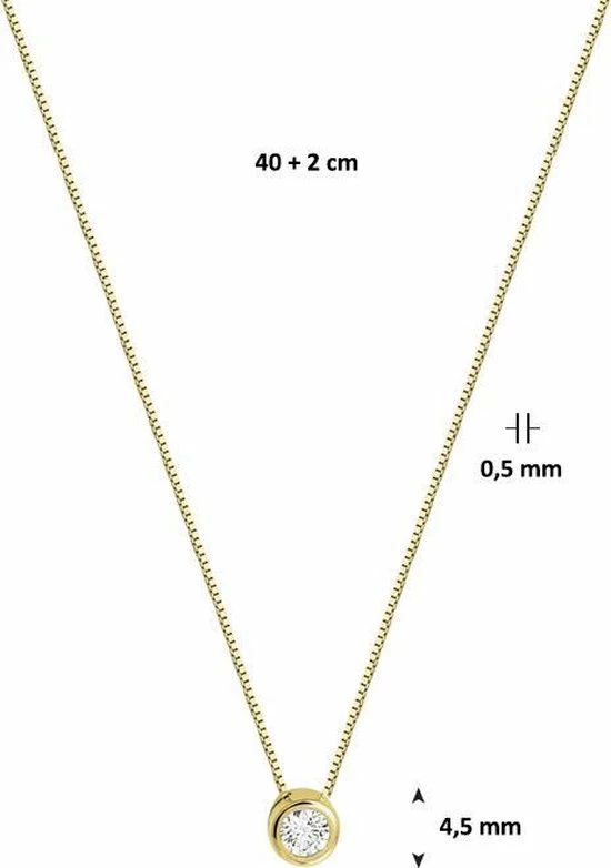 14k Geelgouden ketting met zirkonia in een zetkast met een diameter van 4.5mm. De lengte bedraagt 40cm met 2cm extensie en de schakelbreedte is 0.5mm.