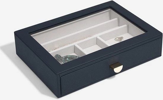 De sieradendoos met lade en kijkvenst het perfect voor je juwelencollectie. Ontworpen met een glazen deksel om je sieraden mooi weer te geven. De zachte fluwelen binnenkant zorgt dat je sieraden veilig en beschermd blijven.