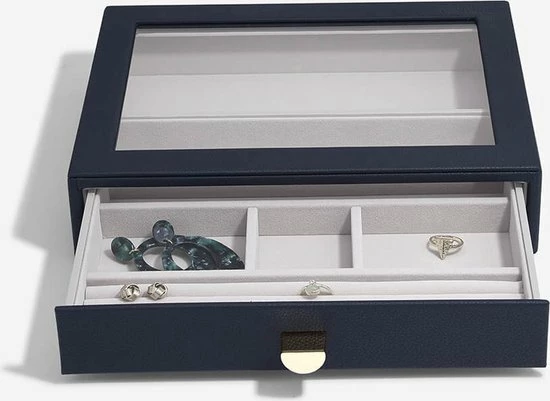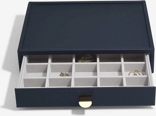 Prachtig sieradendoos van Stackers is volledig naar jouw wens in te richten. Je hebt een ruime keuze in lagen met verschillende sorteervakken.