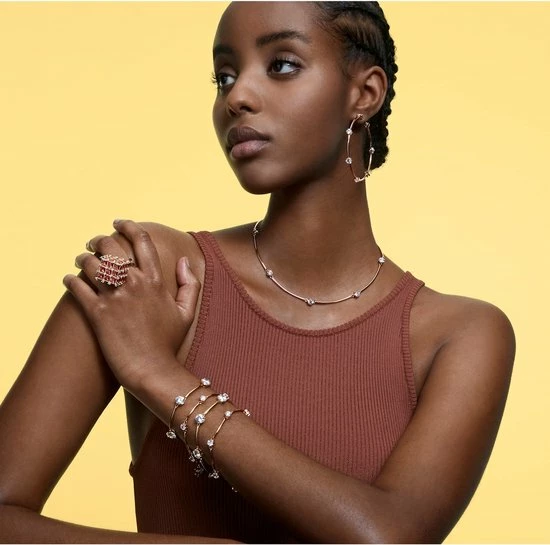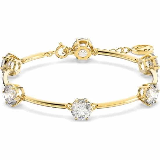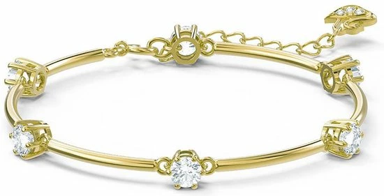 Deze delicate armband is geïnspireerd op het mysterieuze heelal en is ontworpen om mee te bewegen met het lichaam. Een rij van ronde Steenn met een briljantslijpvorm is gezet in een band met goudkleurige plating en met elkaar verbonden door fijne schakels. Draag de armband afzonderlijk of combineer hem met andere designs voor een opvallende avondlook. Deze armband maakt onderdeel uit van de Constella-lijn en is ontworpen door Creative Director Giovanna EnGeelert voor Collection II.