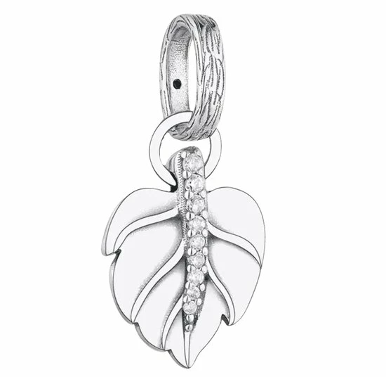 Zilveren bedel boomblad inclusief 925 certificaat. Geschikt voor Pandora en fraai bezet met zirkonia. Een geweldige dangle charm boom en natuur. De mooiste zilveren bedels en charms shop je vertrouwd. Met de zekerheid van een 925 Zilver echtheidscertificaat. En feestelijk verpakt in cadeauverpakking.