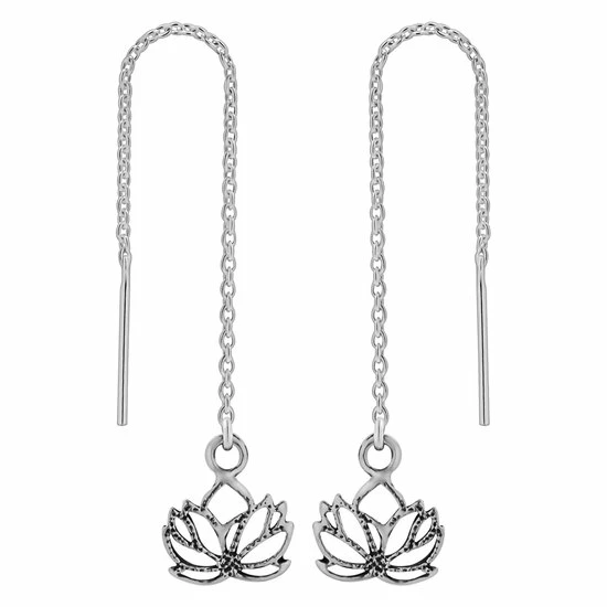 Zilveren oorbellen | Chain oorbellen | Zilveren chain oorbellen met lotusbloem