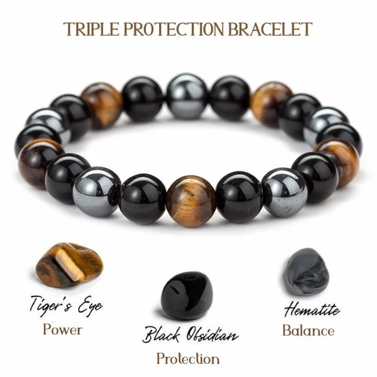 Door de combinatie van deze drie edelstenen zal de Triple Protection Armband van Zendro je onmiddellijk een diep gevoel van kracht, Balans en Bescherming geven.