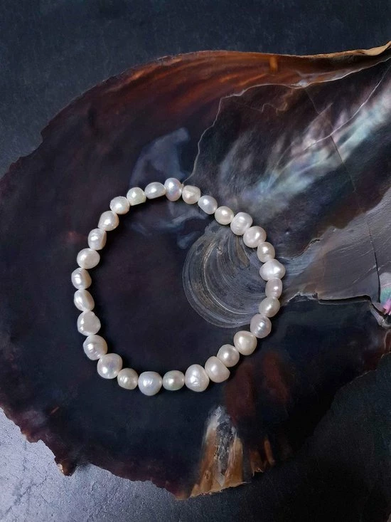 Het parel armband is elastisch waardoor het makkelijk aan en uit te doen is.